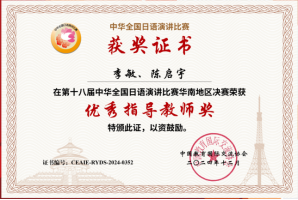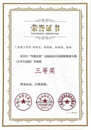 【团队队伍及荣誉】本专业现有日语专任教师22名,均具有硕士研究生学历,其中副教授 3 人、讲师 7 人,“双师型”教师多人。多数教师具有日本高校留学或研修经历,教研方向涵盖日语语言学、文学、翻译理论与实践、社会文化等多个领域,形成了年龄与学缘结构合理的团队队伍。