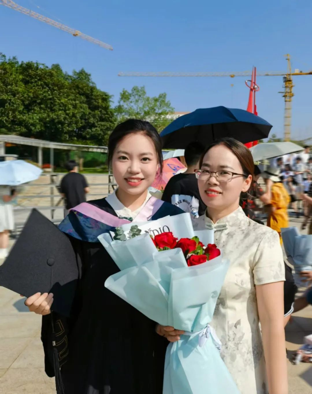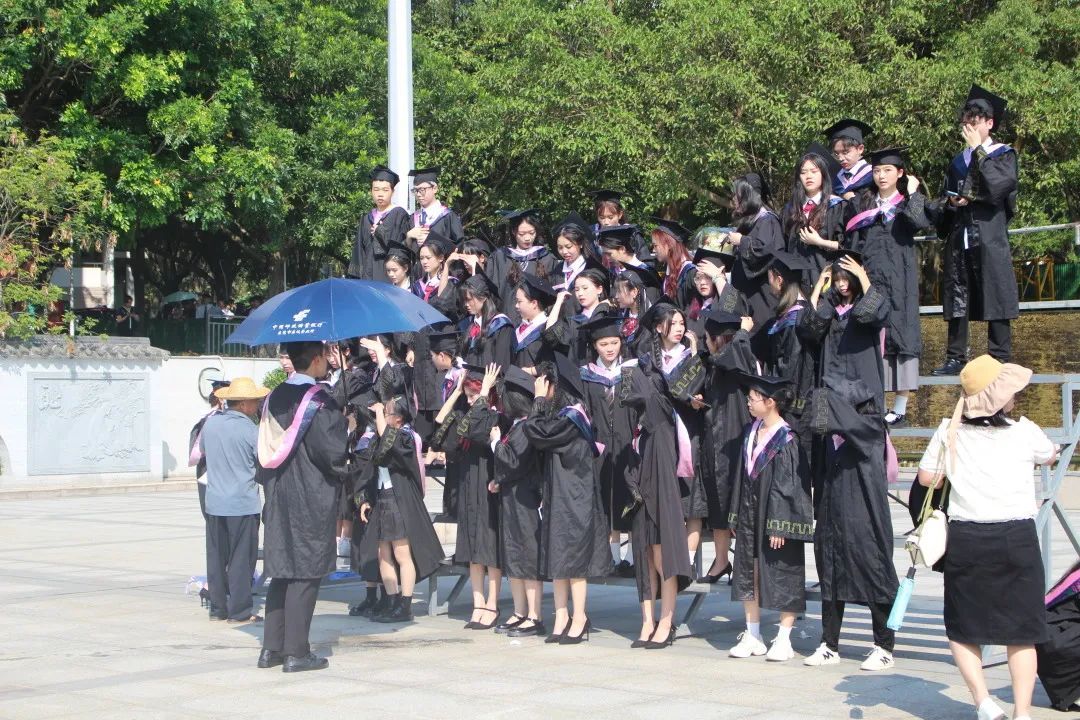 接下来,同学们分散进行合影留念。同学们手捧鲜花,金灿灿的阳光洒在他们的身上,映射出大家多姿多彩的校园生活。或喜笑颜开,或热泪盈眶,这些都展现着同学们对校园的留恋和对未来的期待。