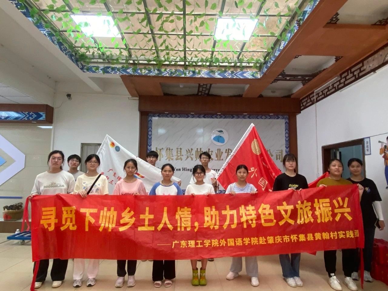 结束参观后,实践队前往怀集县兴帅农业发展有限公司进行参观学习。公司负责人黄丽珍带领队员们参观了电商直播间,并介绍了公司的销售平台、特色产品及其生产体系。参观过程中,团队成员切身感受到了科技对传统农业的重要性,也进一步坚定了运用数字化、智能化对乡村发展和乡镇合作发展的的必要性。实践团队也展开了抖音直播,帮助兴帅公司宣传怀集特产。