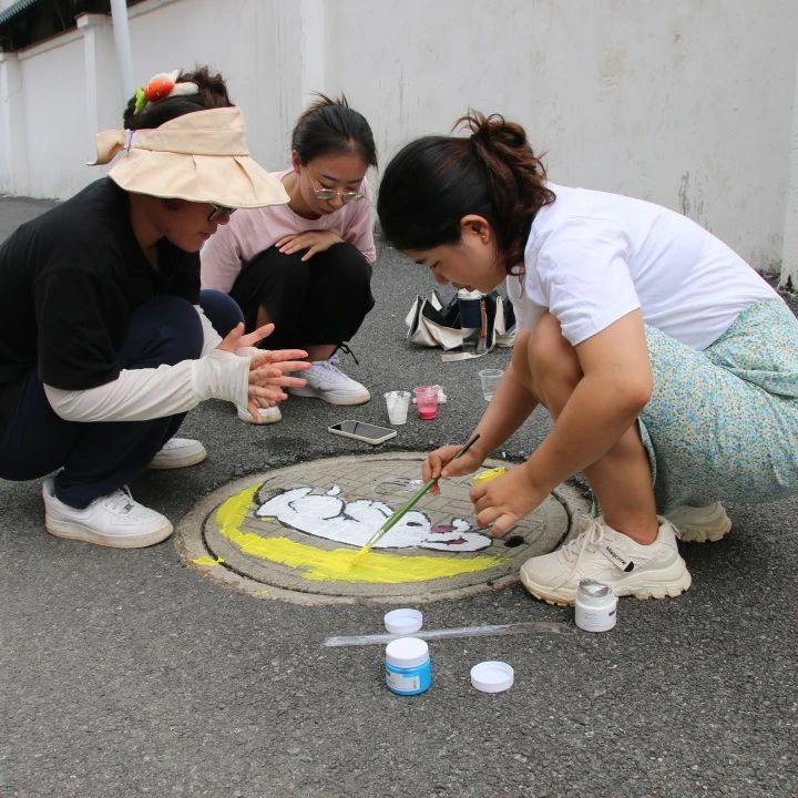 宽阔的三族同胞一家亲的团结广场里,队员们手拿彩绘工具,以井盖作画板,认真勾勒图案并填充颜色。经过数小时的描绘,一幅幅生动的图案随着颜料和笔触落到了井盖上,暗沉的井盖在明亮色彩的点缀下也增添了生机和活力,为下帅民族团结广场构建了一道生动有爱的靓丽风景线。