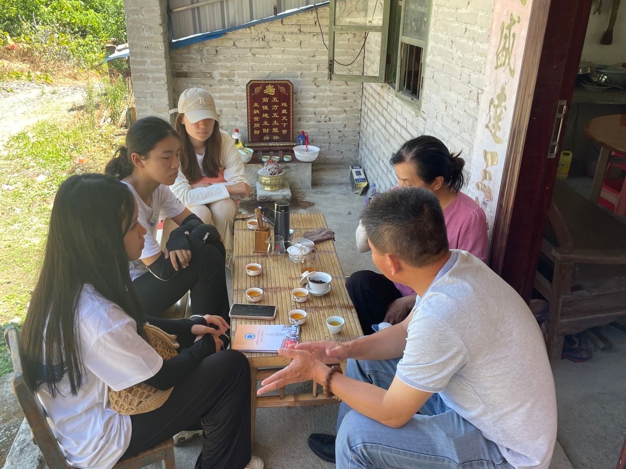 茶不醉人,人自醉。白马茶创始人谢老板从品茶切入主题,让实践队的成员轮流“品”茶,随后指导队员们以“先抿后漱”的方法沉浸式体验了泡茶、品茶。