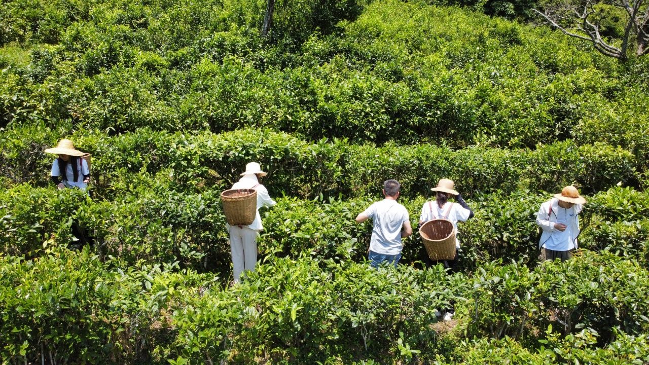 “纸上得来终觉浅,绝知此事要躬行”。实践队队员背上竹制的草帽和背篓出发前往茶园,亲身观摩实践,跟随谢老板了解采茶的规格和技巧;随后实践队队员在其指导下品尝茶芯,虽入口极苦,但回甘后鼻腔瞬间充满了清新的茶香,这也映照出做人要先苦后甜的道理。生态产业背后是茶农们的辛勤付出,推动乡村振兴必须“自找苦吃”,拥有脚踏实地的精神品质。