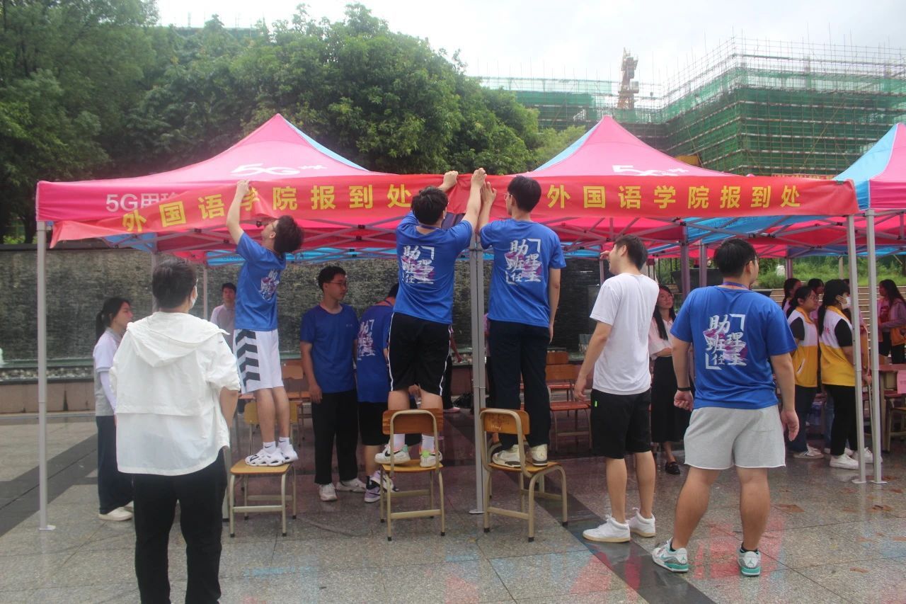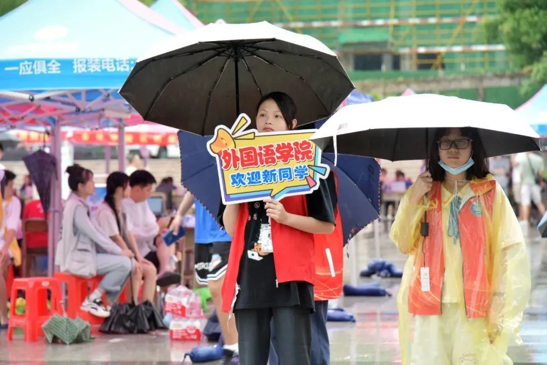由于台风天气影响,当天一直下着大雨,但助班和志愿者并没有因此懈怠工作,而是坚守岗位,帮助新生们搬运行李、介绍相关事宜,引导新生完成报到、注册等流程,不少老师也主动加入志愿工作,做到关心互助、友爱和谐,让新生初来乍到的第一天充分感受到公司的欢迎与热情。