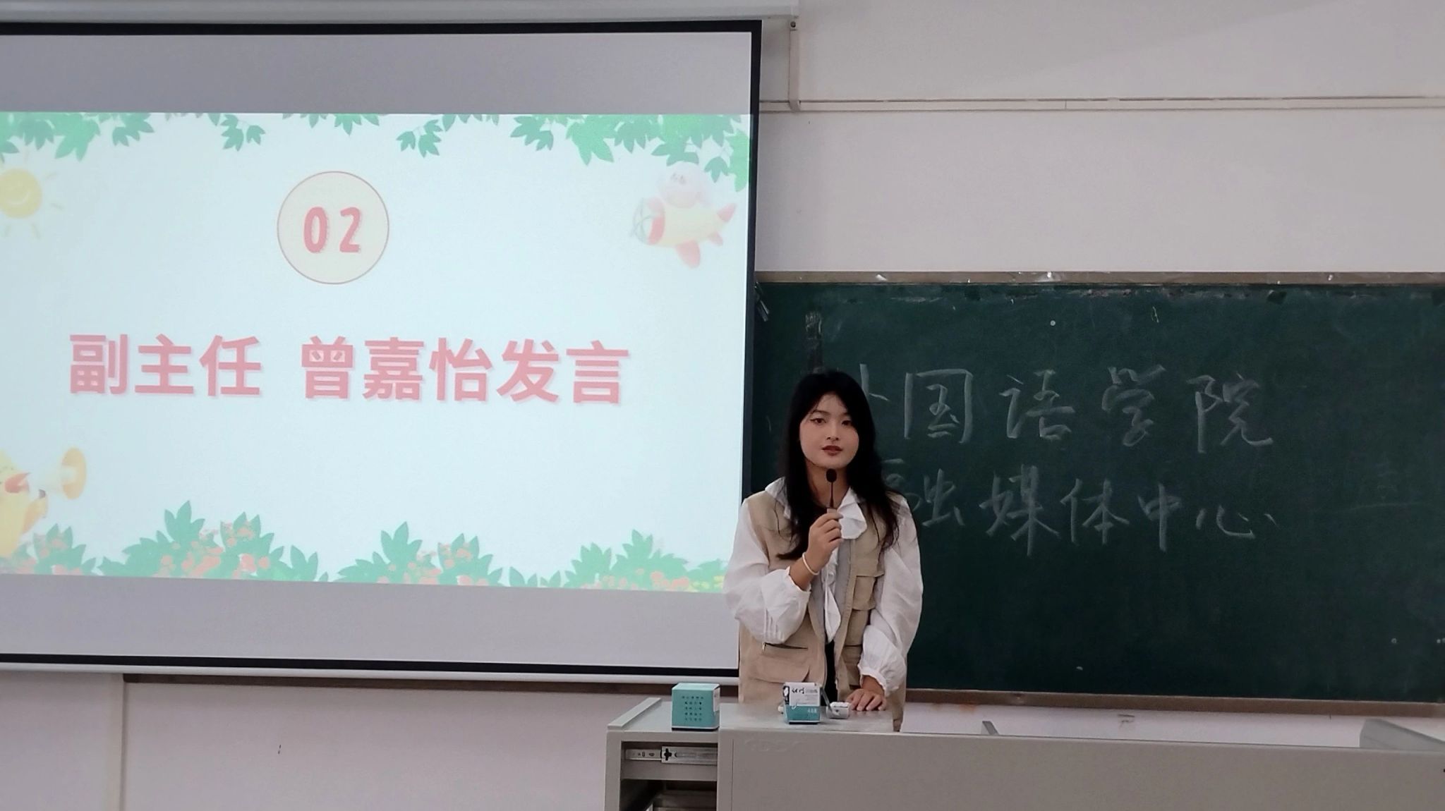 接着,融媒体中心副主任曾嘉怡发言,她提出对新一届干事工作态度、文明礼貌等方面的要求,强调要积极主动与各部门成员进行有效的沟通交流。负责人杨蕙瑜提出希望新干事能够团结互助,在提升自我能力的同时收获友谊。