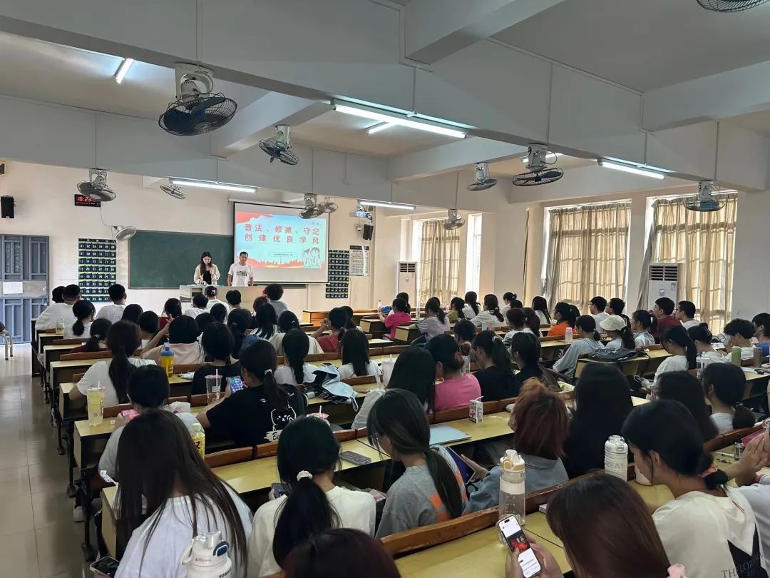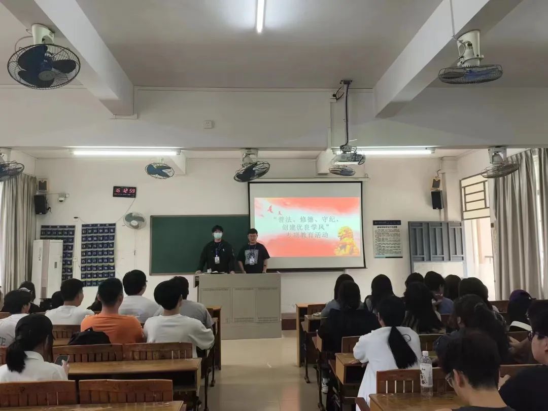 本网讯(suncitygroup太阳新城员工党建服务中心)为提高同学们的法律意识,增强道德和守纪观念,养成良好的学习和生活习惯,共创文明和谐美丽的校园,suncitygroup太阳新城在23级新生班级内开展以“普法、修德、守纪,创建优良学风”为主题的班级大讨论、班级演讲比赛,班级讲座系列活动。