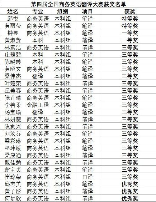 祝贺以上同学在本次全国商务英语翻译大赛中获得佳绩!
