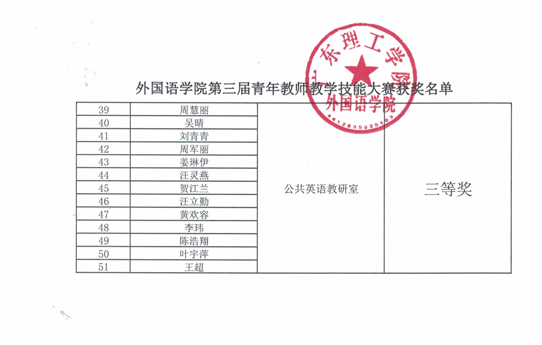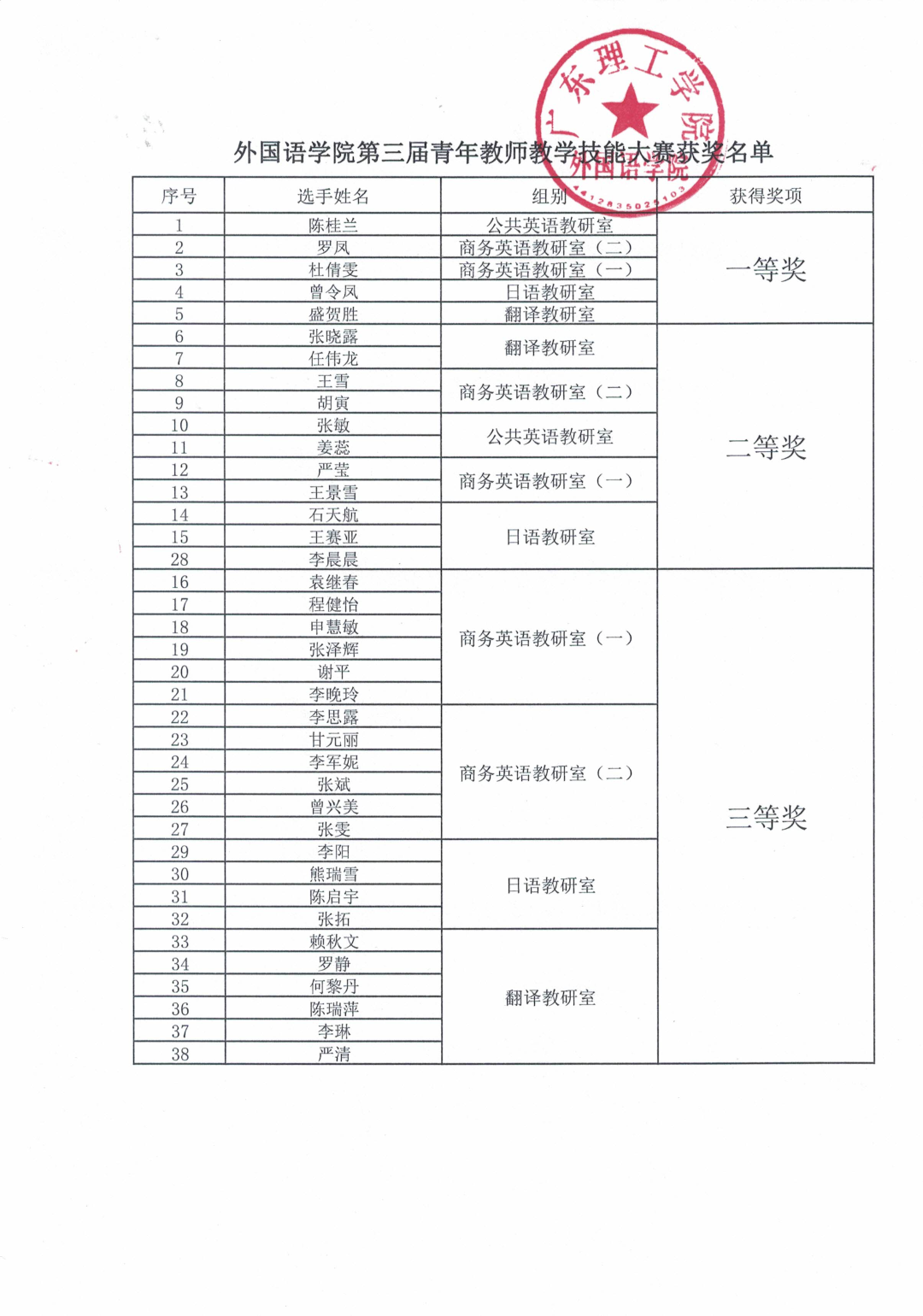 评委老师们针对青年教师的表现进行点评,提出了宝贵的建议和意见,希望青年教师在今后的教学工作中继续积极探索,不断提高教学水平。以下为本次大赛获奖教师名单: