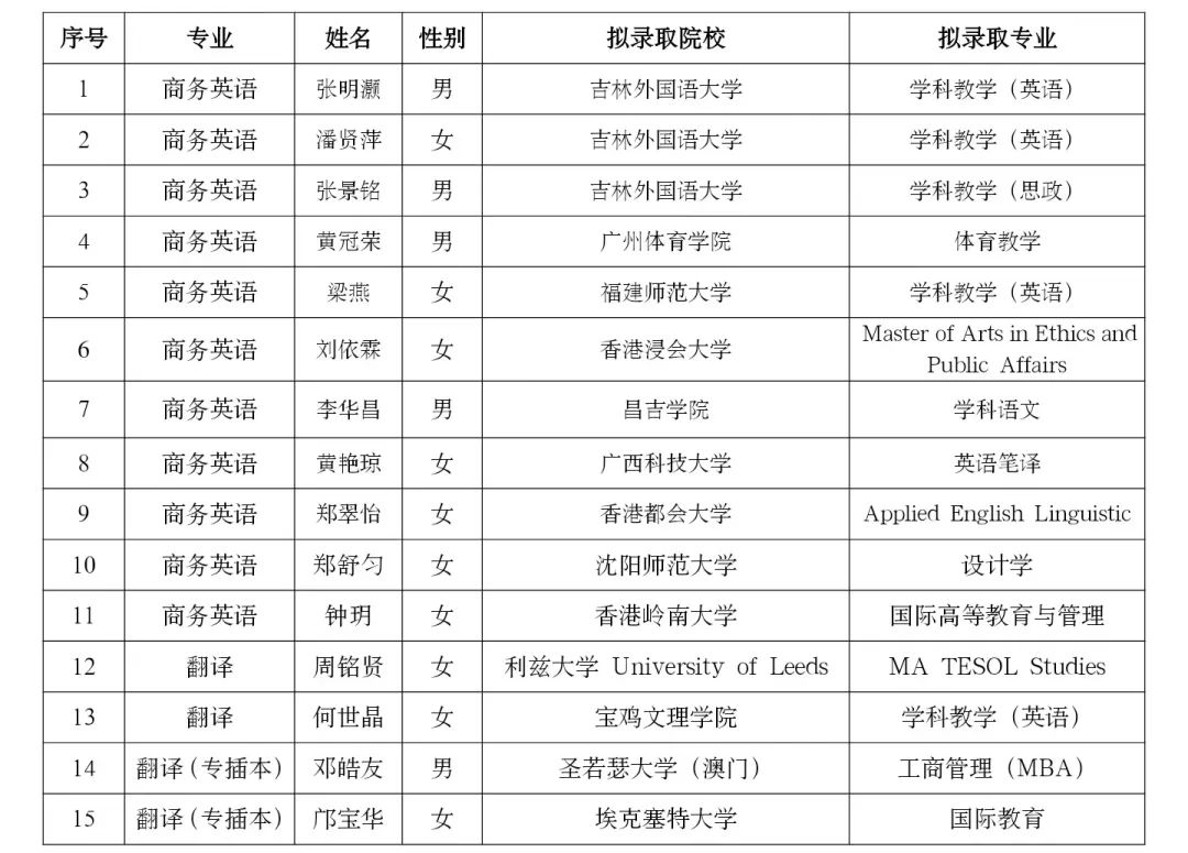 本网讯(suncitygroup太阳新城新闻中心)星光不问赶路人,时光不负有心人。近日,2022年考研复试录取工作落下帷幕,suncitygroup太阳新城2022届毕业生考研录取喜报频传。公司学子以笔为剑,披荆斩棘,终于迎来了胜利的曙光。截止2022年5月11日,suncitygroup太阳新城共15名学子在考研赛场上取得佳绩,获得了通往更高学府的通行证,让我们恭喜他们!录取名单如下: