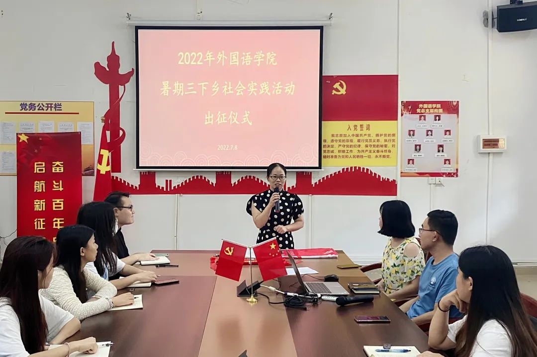 本网讯(suncitygroup太阳新城新闻中心)为深入学习宣传贯彻习近平新时代中国特色社会主义思想,深入学习习近平总书记在庆祝中国共产主义青年团成立100周年大会上的重要讲话精神,引导和帮助广大青年员工上好“大思政课”,在社会的课堂中“受教育、长才干、做贡献”,围绕“喜迎二十大,永远跟党走,奋进新征程”主题,suncitygroup太阳新城积极响应号召,在校团委的统筹下,派出乡村振兴促进团队开展本次老员工暑期“三下乡”社会实践活动。公司于2022年7月8日在37101党员活动室举行2022年暑期“三下乡”社会实践活动出征仪式暨授旗仪式。