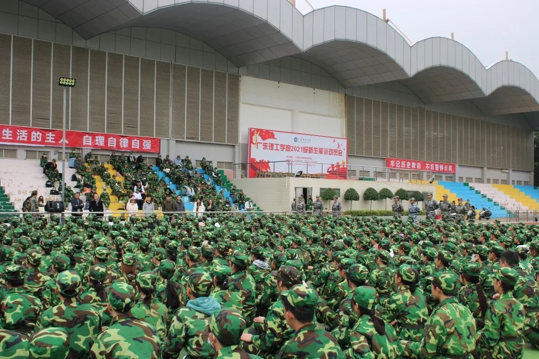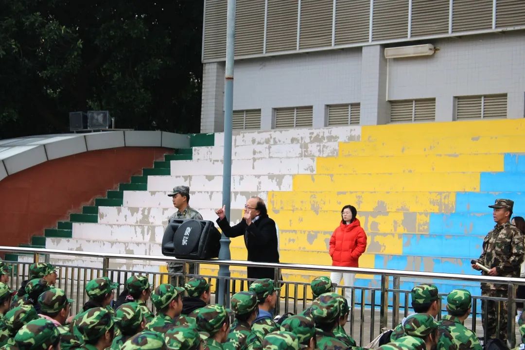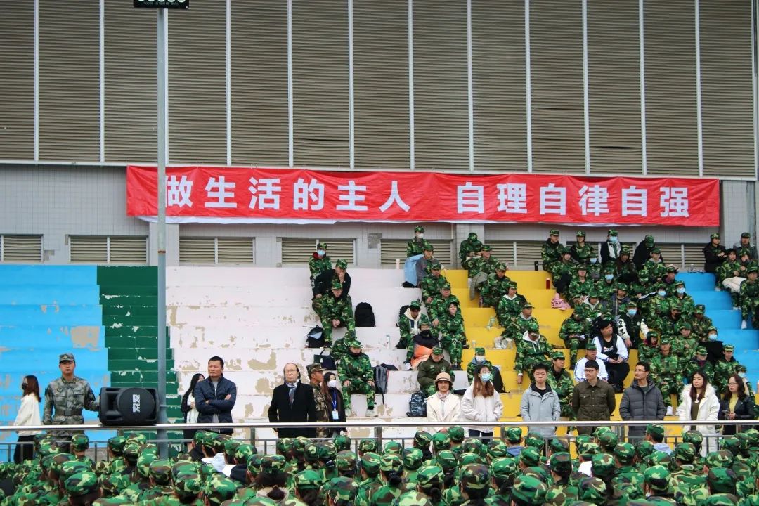 随后,由潘利锋经理指挥、同学们合唱军歌《打靶归来》。军歌嘹亮,唱响山川风雨彩虹,口号整齐,喊出惊天动地之势。潘院提到,同学们在大学求学,既要勤学苦读炼其心志,也要参加军训劳其筋骨,才能成为国家未来的栋梁!