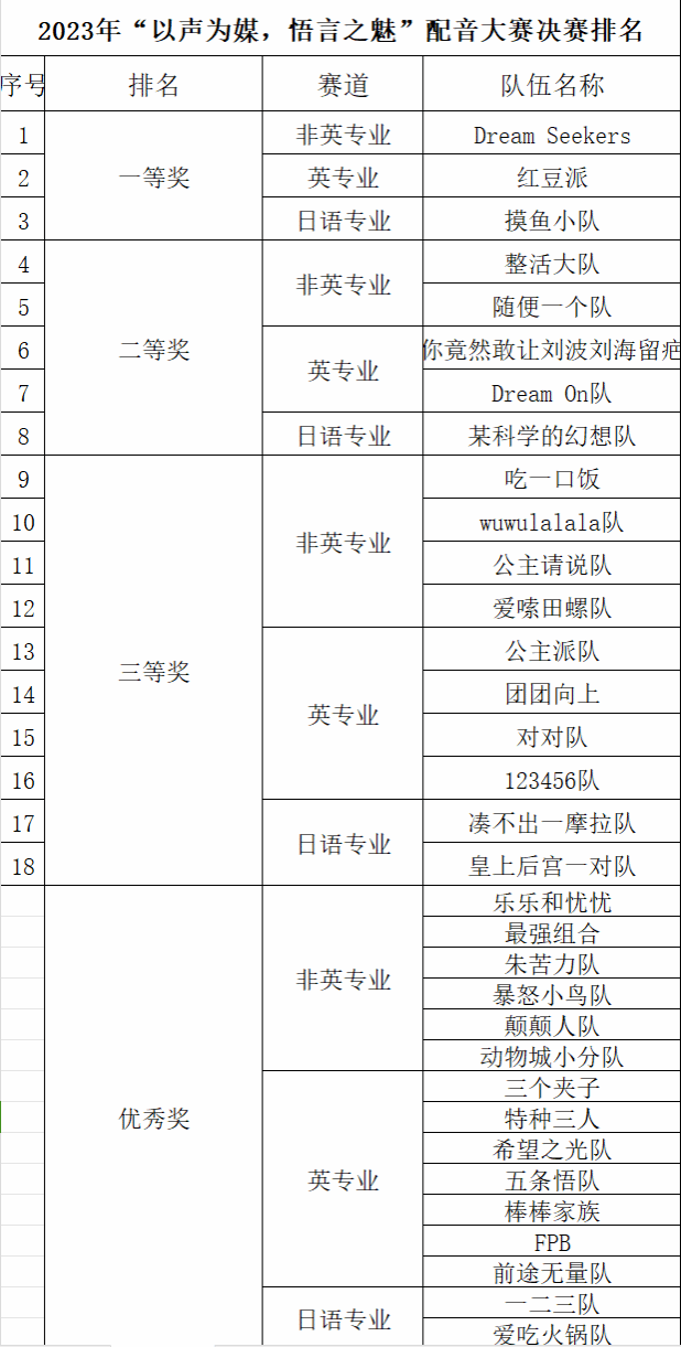 最终,经过严谨的评分,本次配音大赛的获奖名单也跃然纸上: