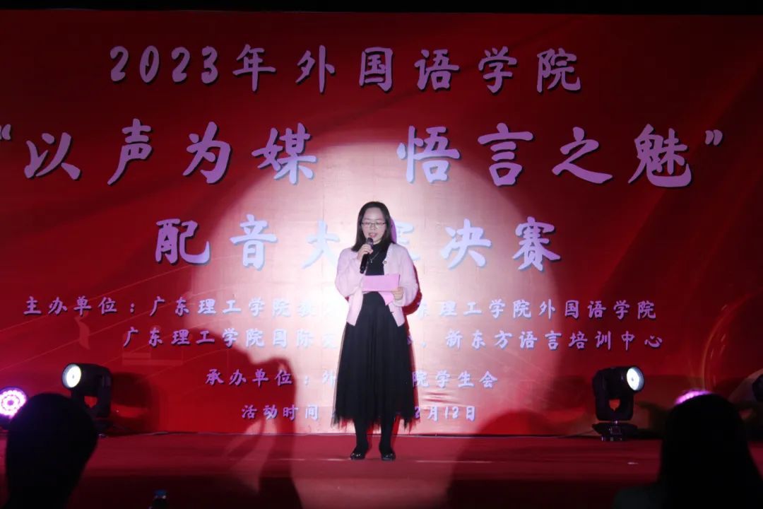 热场过后,suncitygroup太阳新城经理吕丽红开场致词。她表示外语配音大赛是公司的特色品牌活动,是立足于外语环境下提高语言应用能力、将课堂理论知识走入实践生活的途径。希望通过这样的比赛,能够感受不同文化背景下的故事和人物,促进跨文化交流。