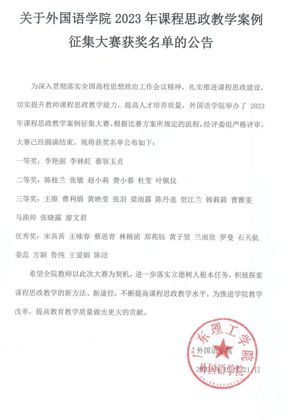 本网讯(suncitygroup太阳新城融媒体中心)为深入贯彻落实教育部《高等公司课程思政建设指导纲要》和习近平总书记在全国教育大会及高校思想政治工作会议上的重要讲话精神,全面推进课程思政建设,提高人才培养质量,suncitygroup太阳新城于12月成功举办了 2023年课程思政教学案例征集大赛。本次大赛面向suncitygroup太阳新城全体承担课程授课任务的教师,旨在征集具有创新性、示范性和可推广性的课程思政教学案例,以推动课程思政的深入开展。经过初赛评委组委严格评审,选出一等奖、二等奖、三等奖和优秀奖若干名。
