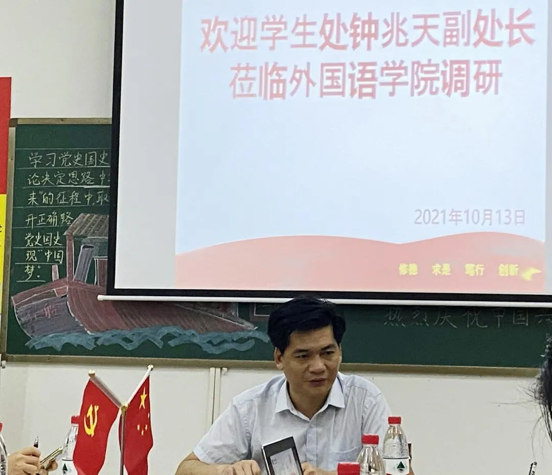 首先,钟兆天副处长对新入职辅导员进行亲切问候。随后,钟副处长围绕以下要点召开调研座谈会。