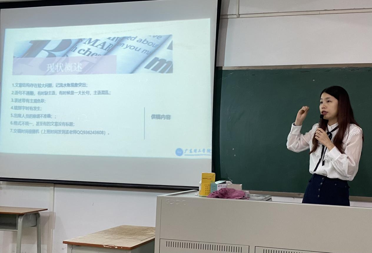 会议伊始,钟玉君老师向各组织的干部及干事强调在新闻采访、报道工作中要做到“知礼”、“慎言”、“快速”,随后向大家简述新闻供稿规范及目前在供稿过程中文稿与照片普遍存在的问题。