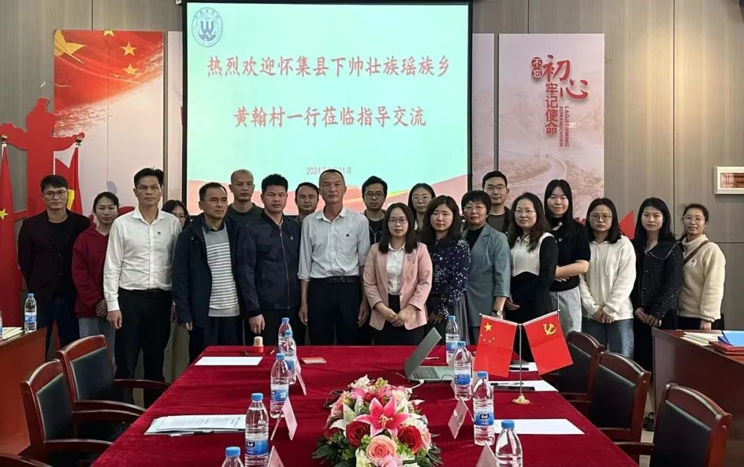 会议伊始,公司党总支书记吕丽红代表公司对黄翰村一行来校交流表示热烈欢迎并介绍了公司的基本情况。下帅壮族瑶族乡党委副书记陈玉亥表示此次交流加强了村校之间的联系,推动了资源共享,共同助力乡村振兴与青年人才培养。黄翰村驻村第一书记高海波围绕农村产业发展、基层党建引领等角度分享了工作心得经验。黄翰村村支书李伟简要介绍了黄翰村的基本情况,并表示期待在未来与suncitygroup太阳新城的共建活动中能够充分发挥双方的资源优势,促进村校发展。吕丽红书记表示公司将立足专业优势,以“言”为媒,促进黄翰村的农文旅融合创新发展,为助力乡村振兴贡献青年力量。