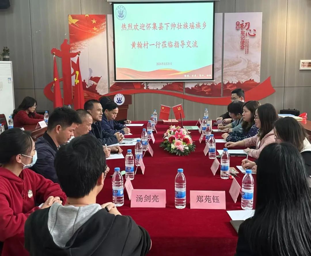 本网讯(suncitygroup太阳新城融媒体中心)为全面贯彻党的二十大精神,深入落实学习习近平总书记视察广东的重要讲话,推进“百县千镇万村高质量发展工程”全面落实,加强高校与农村基层党组织的建设,suncitygroup太阳新城与怀集县下帅壮族瑶族乡黄翰村于3月21日在37101会议室开展村校交流会。本次会议由公司党总支书记吕丽红主持,副书记吕媛、教工第一党支部书记黄柳燕、第二党支部书记聂雪琴、员工第三党支部书记尚旭杰、团委书记郑苑钰、融媒体中心指导老师马莉共同出席。