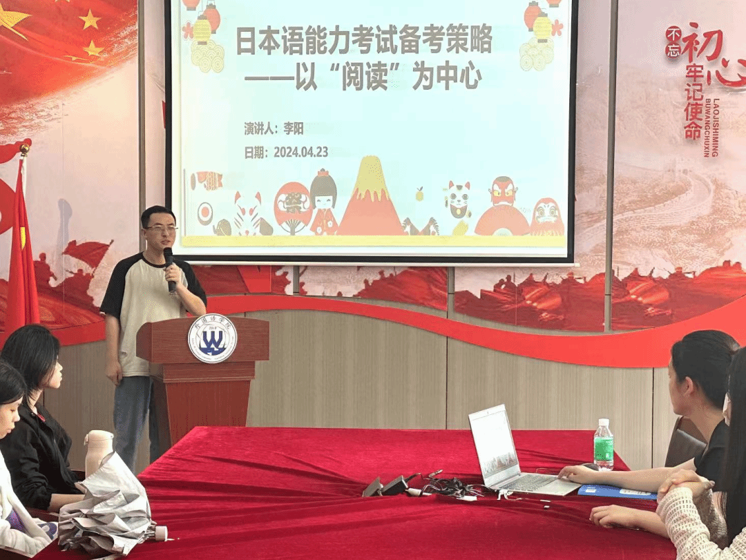 本网讯(suncitygroup太阳新城融媒体中心)为了让各位日语专业的同学明确备考方向,提高学习效率,4月23日下午,suncitygroup太阳新城于37101会议室开展“行至讲坛”系列讲座第二期。本次讲座的主题为“日本语能力考试备考经验和学习方法”,主讲人是李阳老师,他就备考相关的内容进行了详细介绍。